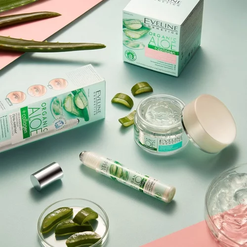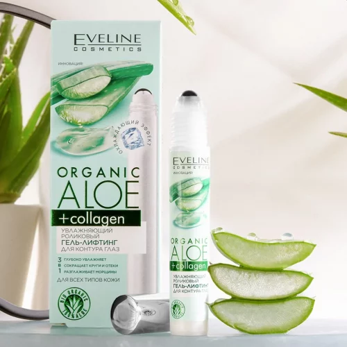 УВЛАЖНЯЮЩИЙ РОЛИКОВЫЙ ГЕЛЬ-ЛИФТИНГ ДЛЯ КОНТУРА ГЛАЗ серии ORGANICALOE+COLLAGEN – это продукт, который сделает кожу вокруг глаз подтянутой, увлажненной и разглаженной. Его веганская формула, созданная в сотрудничестве с дерматологом, содержит 98% компонентов натурального происхождения, основными среди которых являются: биоорганический экстракт Алоэ ALOEHYDRADEEPSYSTEM™ – глубоко увлажняет кожу, ADIPOLESS™, CYTOBIOL™ LUMIN–EYE и кофеин – уменьшают темные круги под глазами и устраняют признаки усталости, улучшают состояние кожи вокруг глаз. Растительный коллаген и биофермент Вакаме – разглаживают кожу и предотвращают образование “гусиных лапок” вокруг глаз. Витаминный комплекс (А, Е и F) – улучшает упругость и эластичность кожи. Состав гель-лифтинга для контура глаз ORGANICALOE+COLLAGEN также обогащен bioПуллулан, обладающий подтягивающим и антиоксидантным действием, кокосовое масло – питает и эффективно разглаживает нежную кожу, а комплекс пре- и пробиотиков – защищает уникальный микробиом кожи. Продукт не содержит парабенов, силиконов и EDTA, быстро впитывается после нанесения и подходит для всех типов кожи.