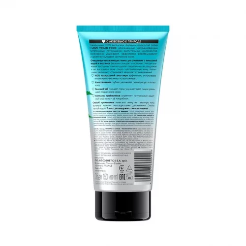 ОЧИЩАЮЩЕ-УВЛАЖНЯЮЩАЯ ПЕНКА ДЛЯ УМЫВАНИЯ I LOVE VEGAN FOOD с кокосовой водой и алоэ вера бережно очищает и освежает. Мягкая кремовая текстура мгновенно удаляет загрязнения, не раздражая и не высушивая даже самую чувствительную кожу. Пенка для умывания интенсивно увлажняет, успокаивает, защищает от раздражений.